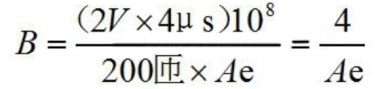 現在咱們來看磁芯,假定二極管是一般的一般的二極管,通態電壓大約為1V,電流為10A/200=50mA。互感器輸出電壓為1V,加上二極管的通態電壓1V,總電壓大約2V250kHz頻率作業時,磁芯上的磁感應強度不會跨越